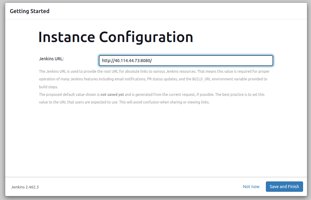 We need to verify the IP address and domain with port 8080 and then click on Save and finish.